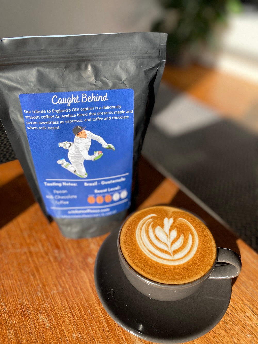 Fast, fearless and full of flavour, Caught Behind is our tribute to the legendary Jos Buttler. This smooth Arabica blend serves up maple and pecan sweetness as espresso, and rich toffee-chocolate notes when milk-based.