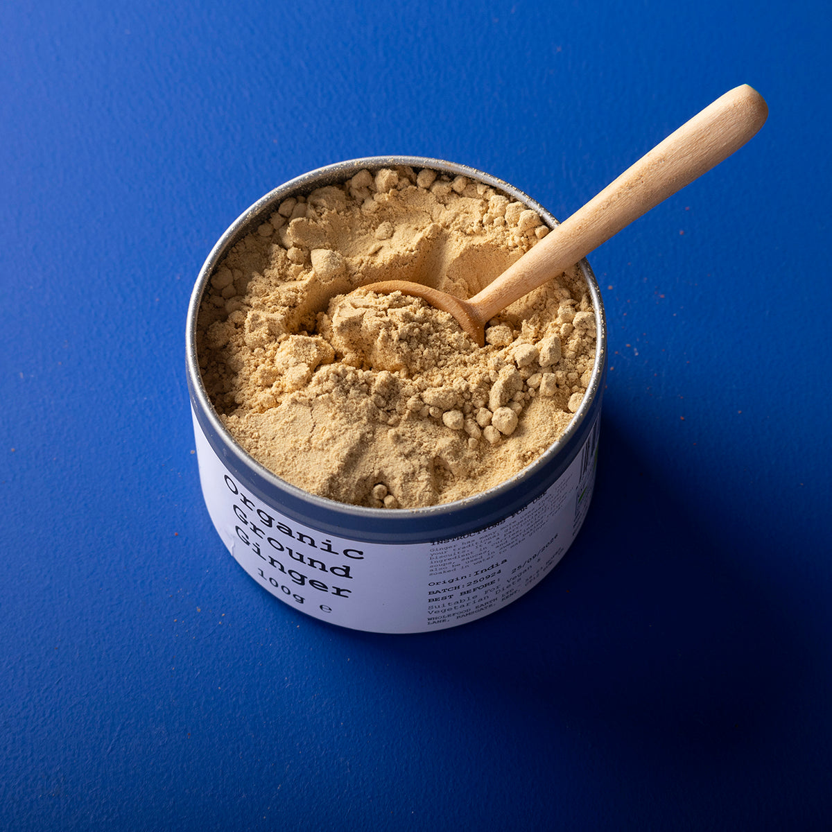 Wild Elephant Ground Ginger is made from organic ginger root. It has a slightly peppery and sweet flavour, with a pungent and spicy aroma that works well with many recipes.