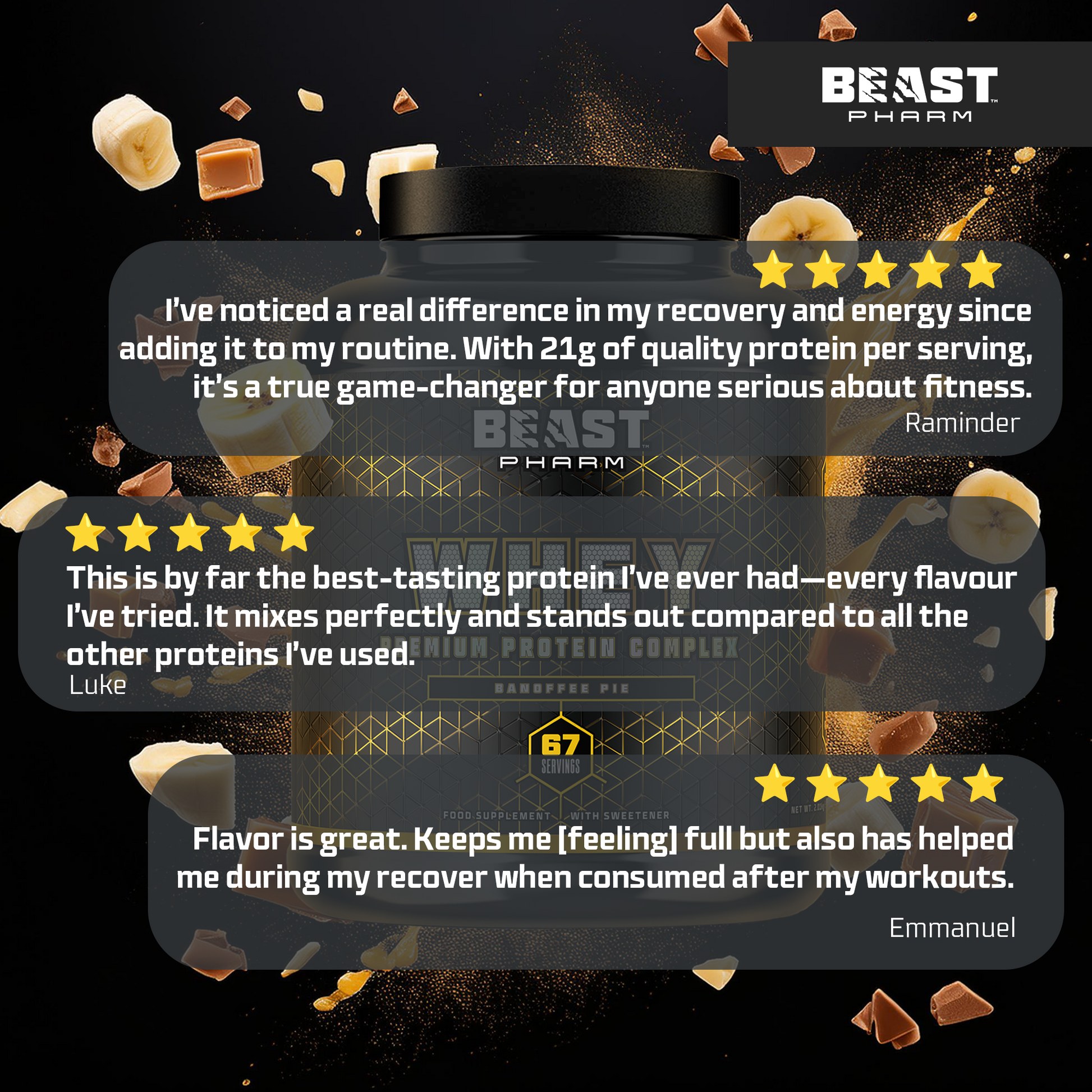 Beast Pharm WHEY is a high-quality advanced protein complex. Each serving provides 21g of protein, perfect for you double scoopers out there. Empower your muscles with the essential amino acid building blocks to grow, repair and recover to become the BEAST version of yourself.†